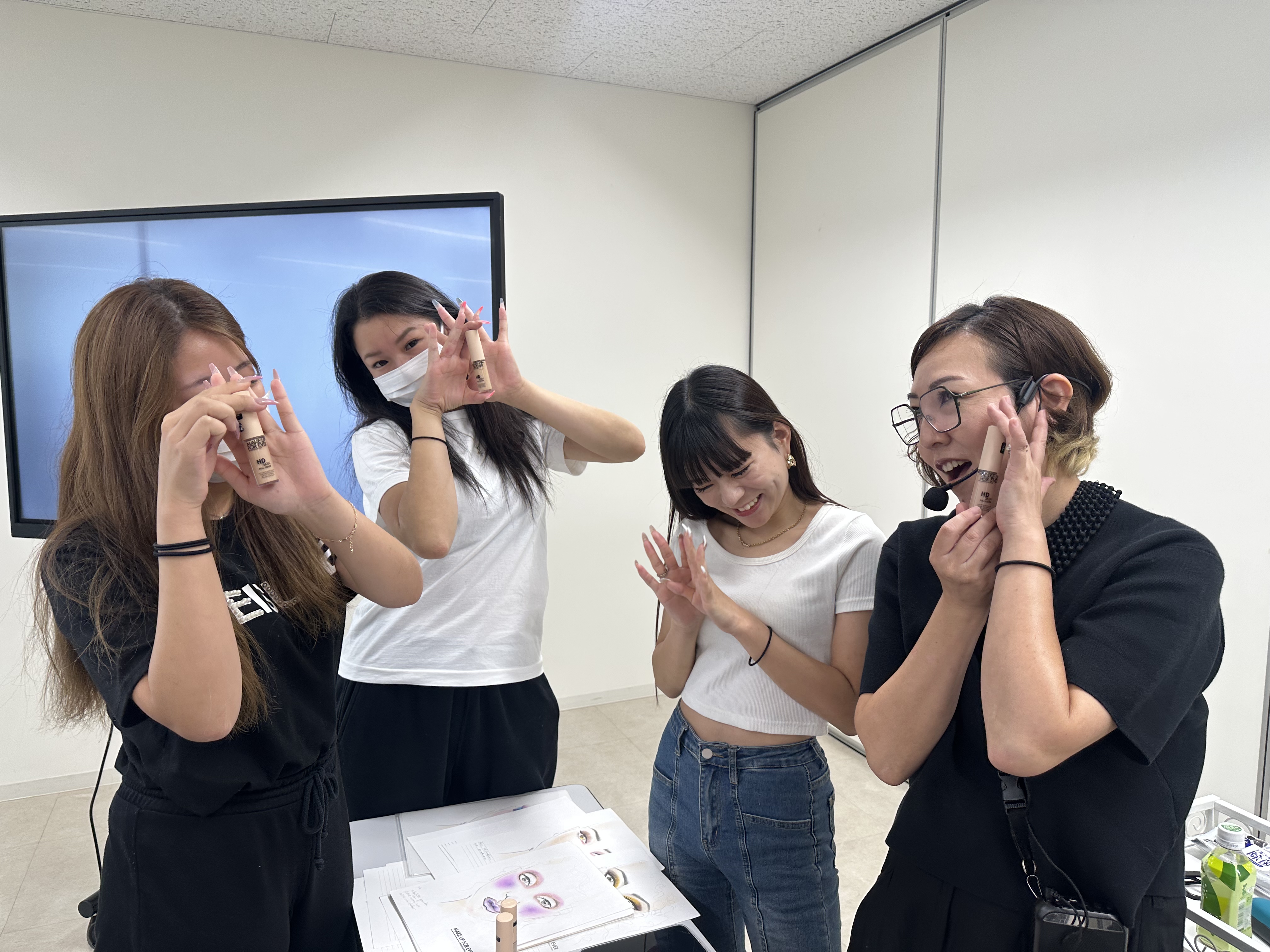 MAKE UP FOR EVERの化粧品とAKIKO先生の魅力に完全にハマった学生たちでした笑