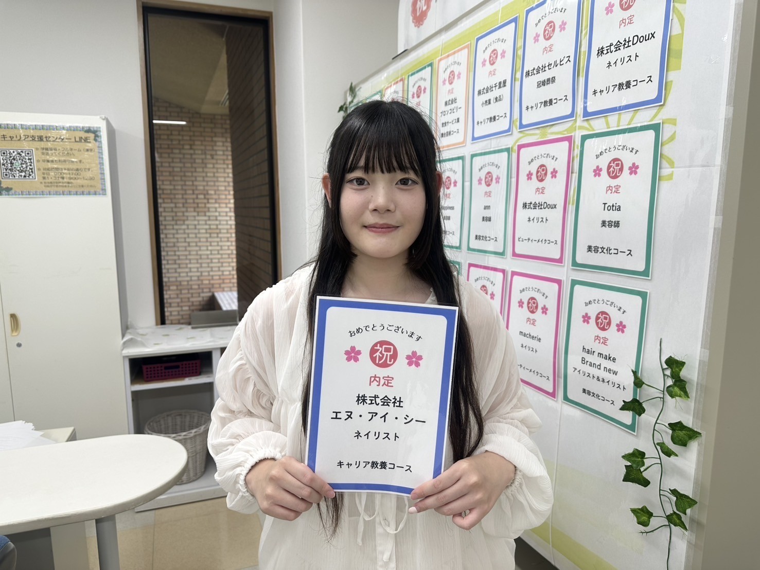 キャリア教養コースの弥園 茉玲さんが、「株式会社エヌ・アイ・シー(ネイリスト)」さまで内定を獲得しました!