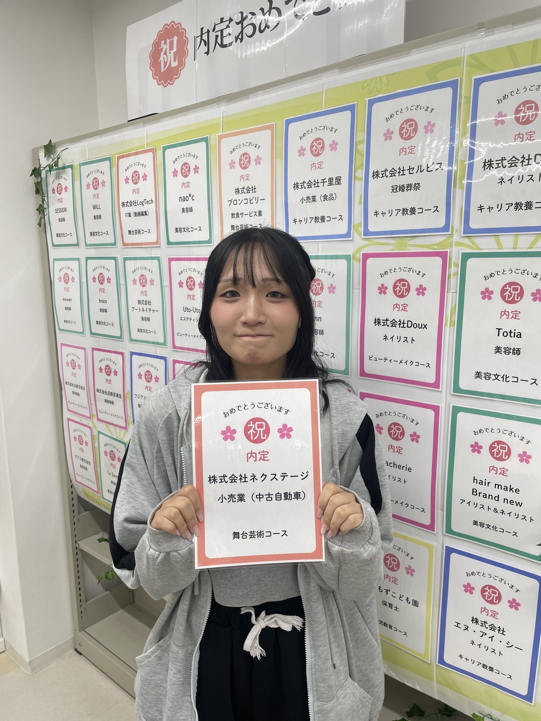 舞台芸術コースの田村 誉さんが、「株式会社ネクステージ(営業職)」さまで内定を獲得しました!
