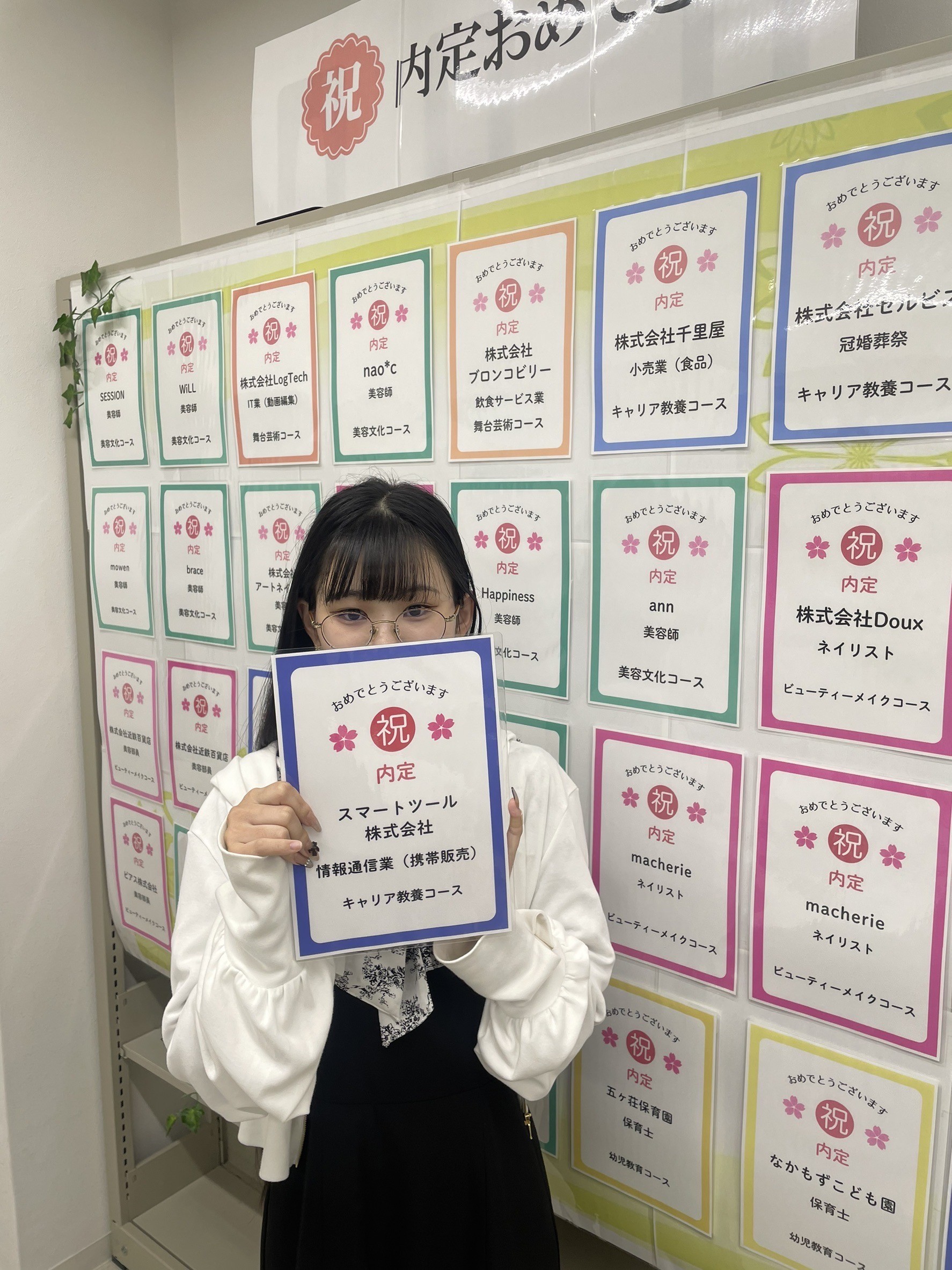 キャリア教養コースの内田 はなさんが、「スマートツール株式会社(携帯販売職)」さまで内定を獲得しました!
