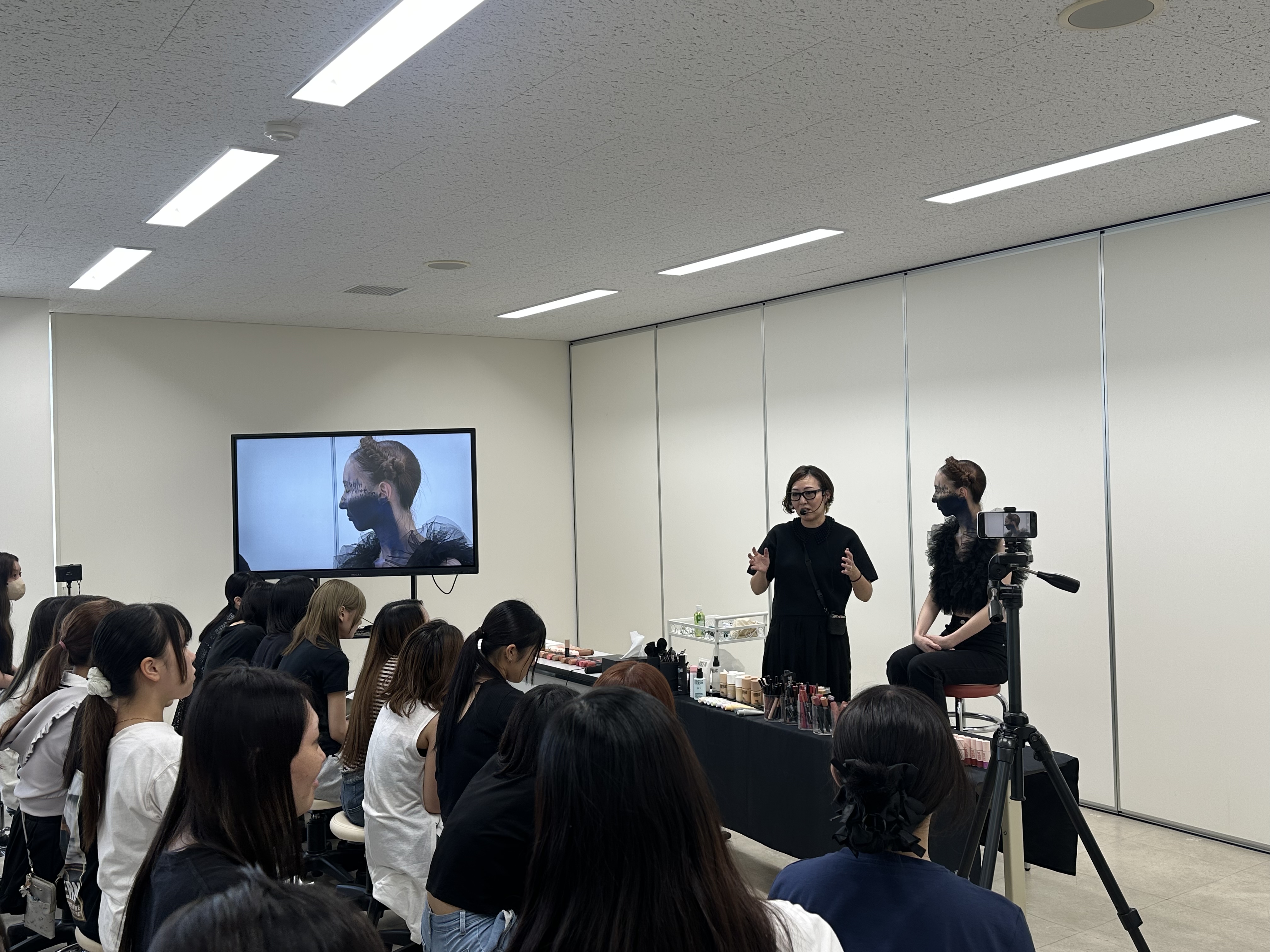 MAKE UP FOR EVERの化粧品とAKIKO先生の魅力に完全にハマった学生たちでした笑